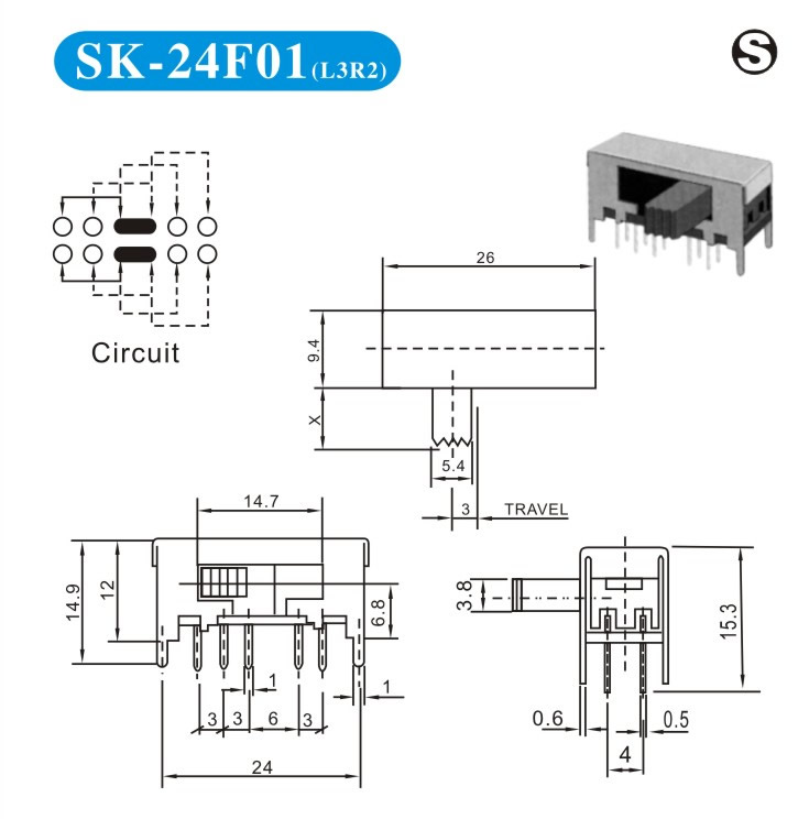 SK-24F01 詳細(xì)資料 產(chǎn)品說明: 技術(shù)指標(biāo): 使用溫度范圍 -20~+70℃ 耐壓 AC250V(50Hz)/min 額定負(fù)荷 DC 50V 0.5A 動作力 250±100gf 接觸電阻 ≤0.05Ω 機械壽命 10000次 絕緣電阻 ≥100MΩ