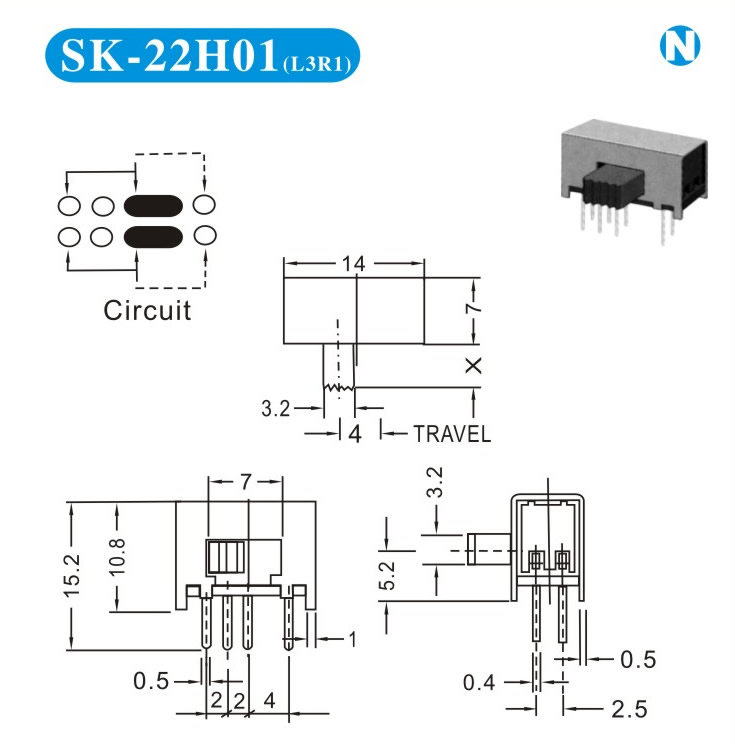 SK-22H01 詳細(xì)資料 產(chǎn)品說明: 技術(shù)指標(biāo): 使用溫度范圍 -20~+70℃ 耐壓 AC250V(50Hz)/min 額定負(fù)荷 DC 50V 0.5A 動作力 250±100gf 接觸電阻 ≤0.05Ω 機(jī)械壽命 10000次 絕緣電阻 ≥100MΩ