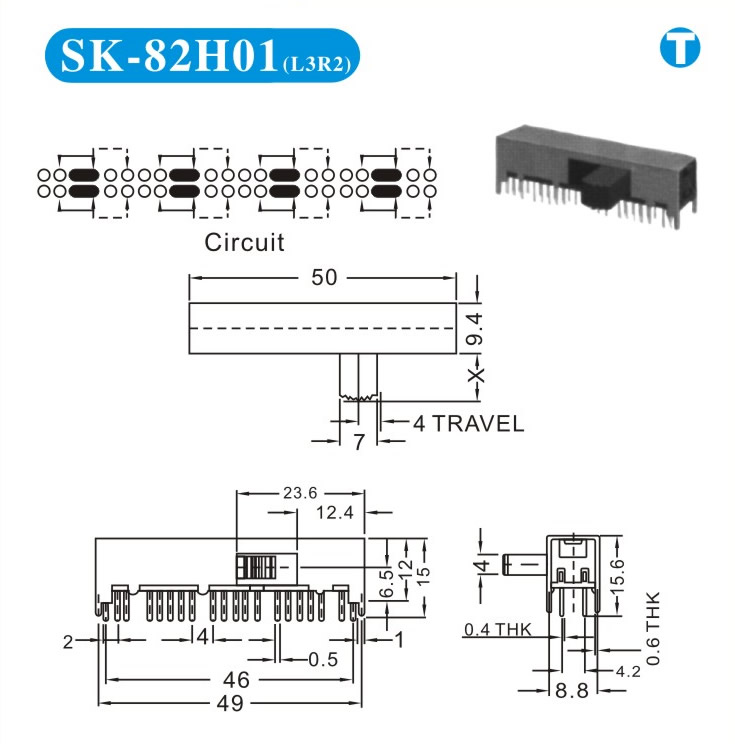 SK-82H01 詳細(xì)資料 產(chǎn)品說明: 技術(shù)指標(biāo): 使用溫度范圍 -20~+70℃ 耐壓 AC250V(50Hz)/min 額定負(fù)荷 DC 50V 0.5A 動作力 250±100gf 接觸電阻 ≤0.05Ω 機(jī)械壽命 10000次 絕緣電阻 ≥100MΩ