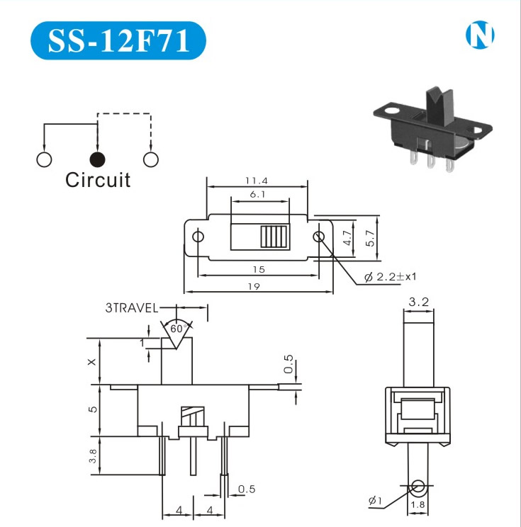 SS-12F71 詳細資料 產(chǎn)品說明: 技術(shù)指標: 使用溫度范圍 -20~+70℃ 耐壓 AC250V(50Hz)/min 額定負荷 DC 50V 0.5A 動作力 250±100gf 接觸電阻 ≤0.05Ω 機械壽命 10000次 絕緣電阻 ≥100MΩ