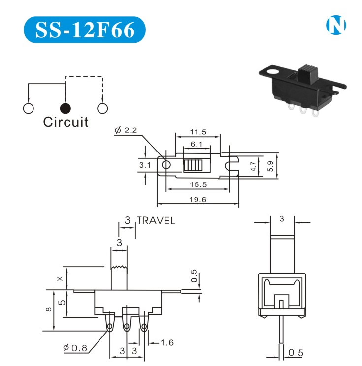 SS-12F66 詳細資料 產品說明: 技術指標: 使用溫度范圍 -20~+70℃ 耐壓 AC250V(50Hz)/min 額定負荷 DC 50V 0.5A 動作力 250±100gf 接觸電阻 ≤0.05Ω 機械壽命 10000次 絕緣電阻 ≥100MΩ