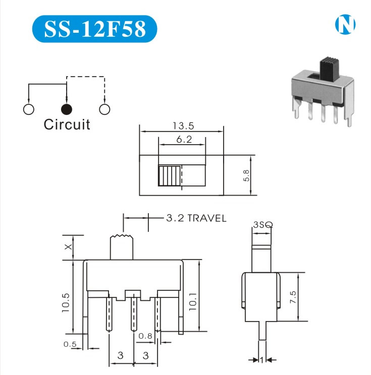 SS-12F58 詳細(xì)資料 產(chǎn)品說(shuō)明: 技術(shù)指標(biāo): 使用溫度范圍 -20~+70℃ 耐壓 AC250V(50Hz)/min 額定負(fù)荷 DC 50V 0.5A 動(dòng)作力 250±100gf 接觸電阻 ≤0.05Ω 機(jī)械壽命 10000次 絕緣電阻 ≥100MΩ