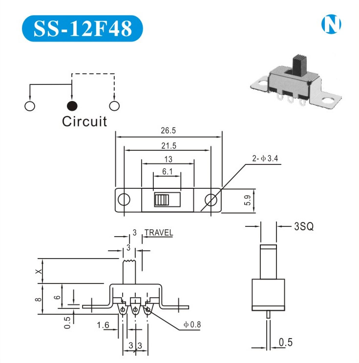 SS-12F48 詳細(xì)資料 產(chǎn)品說明: 技術(shù)指標(biāo): 使用溫度范圍 -20~+70℃ 耐壓 AC250V(50Hz)/min 額定負(fù)荷 DC 50V 0.5A 動作力 250±100gf 接觸電阻 ≤0.05Ω 機械壽命 10000次 絕緣電阻 ≥100MΩ