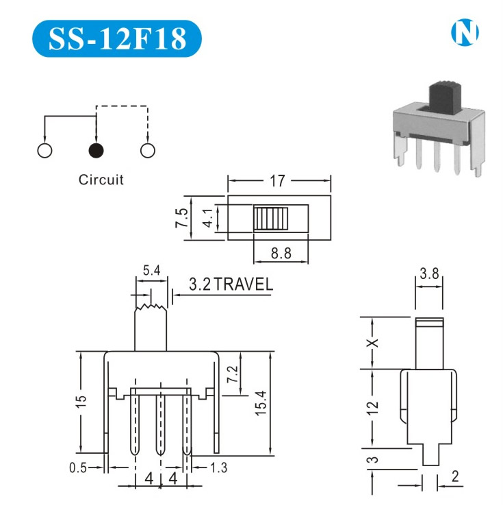 SS-12F18 詳細資料 產品說明: 技術指標: 使用溫度范圍 -20~+70℃ 耐壓 AC250V(50Hz)/min 額定負荷 DC 50V 0.5A 動作力 250±100gf 接觸電阻 ≤0.05Ω 機械壽命 10000次 絕緣電阻 ≥100MΩ