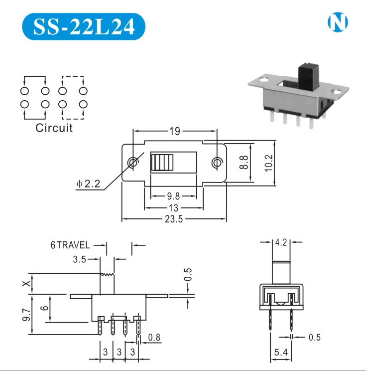 SS-22L24 詳細(xì)資料 產(chǎn)品說明: 技術(shù)指標(biāo): 使用溫度范圍 -20~+70℃ 耐壓 AC250V(50Hz)/min 額定負(fù)荷 DC 50V 0.5A 動作力 250±100gf 接觸電阻 ≤0.05Ω 機(jī)械壽命 10000次 絕緣電阻 ≥100MΩ