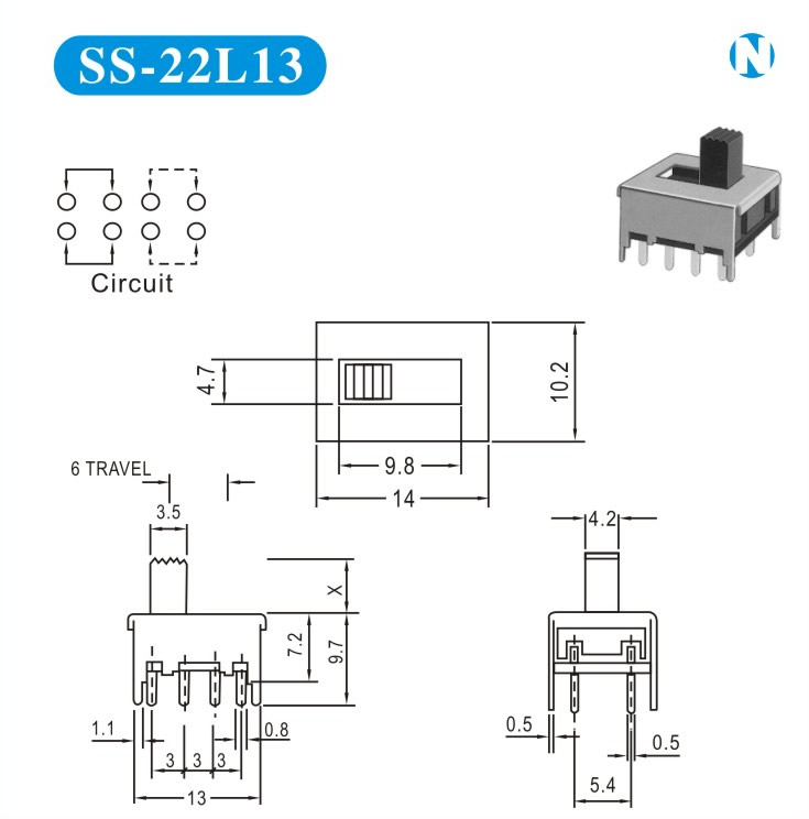 SS-22L13 詳細(xì)資料 產(chǎn)品說(shuō)明: 技術(shù)指標(biāo): 使用溫度范圍 -20~+70℃ 耐壓 AC250V(50Hz)/min 額定負(fù)荷 DC 50V 0.5A 動(dòng)作力 250±100gf 接觸電阻 ≤0.05Ω 機(jī)械壽命 10000次 絕緣電阻 ≥100MΩ