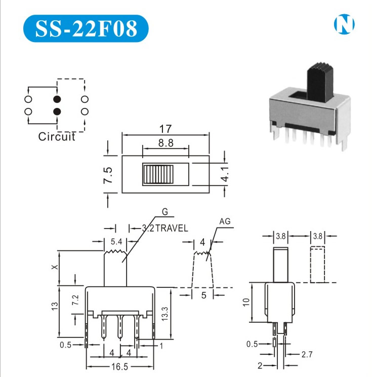 SS-22F08 詳細(xì)資料 產(chǎn)品說明: 技術(shù)指標(biāo): 使用溫度范圍 -20~+70℃ 耐壓 AC250V(50Hz)/min 額定負(fù)荷 DC 50V 0.5A 動(dòng)作力 250±100gf 接觸電阻 ≤0.05Ω 機(jī)械壽命 10000次 絕緣電阻 ≥100MΩ