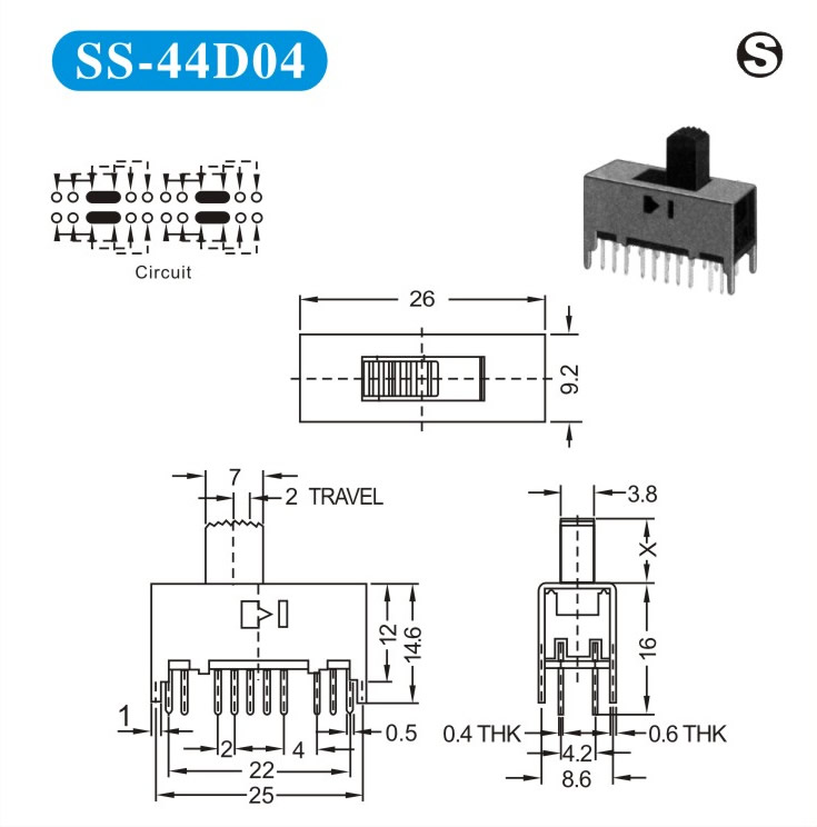 SS-44D04 詳細(xì)資料 產(chǎn)品說(shuō)明: 技術(shù)指標(biāo): 使用溫度范圍 -20~+70℃ 耐壓 AC250V(50Hz)/min 額定負(fù)荷 DC 50V 0.5A 動(dòng)作力 250±100gf 接觸電阻 ≤0.05Ω 機(jī)械壽命 10000次 絕緣電阻 ≥100MΩ