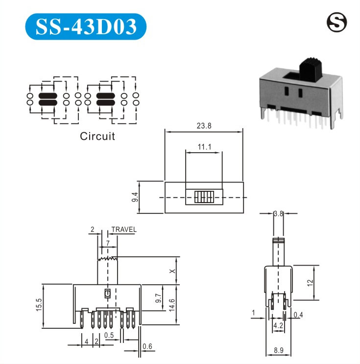 SS-43D03 詳細(xì)資料 產(chǎn)品說(shuō)明: 技術(shù)指標(biāo): 使用溫度范圍 -20~+70℃ 耐壓 AC250V(50Hz)/min 額定負(fù)荷 DC 50V 0.5A 動(dòng)作力 250±100gf 接觸電阻 ≤0.05Ω 機(jī)械壽命 10000次 絕緣電阻 ≥100MΩ