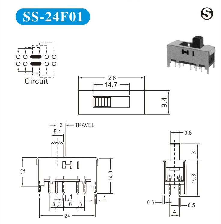 SS-24F01 詳細資料 產(chǎn)品說明: 技術指標: 使用溫度范圍 -20~+70℃ 耐壓 AC250V(50Hz)/min 額定負荷 DC 50V 0.5A 動作力 250±100gf 接觸電阻 ≤0.05Ω 機械壽命 10000次 絕緣電阻 ≥100MΩ